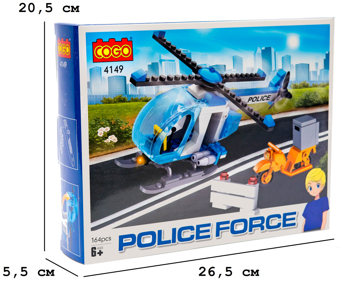 Конструктор це одна з найулюбленіших іграшок дітей різного віку. Конструктор COGO CITY, Поліцейський вертоліт приведе в захват дитину, яка обожнює погоні і поліцейських. Хитрий шахрай скоїв черговий злочин і намагається безсовісно втекти з місця злочину. У нього є потужний мотоцикл з вантажним відсіком. Але всім його злочинним планам не дано збутися, адже на варті порядку відважний поліцейський на вертольоті. До того ж, шахрай здається не помітив шлагбаум