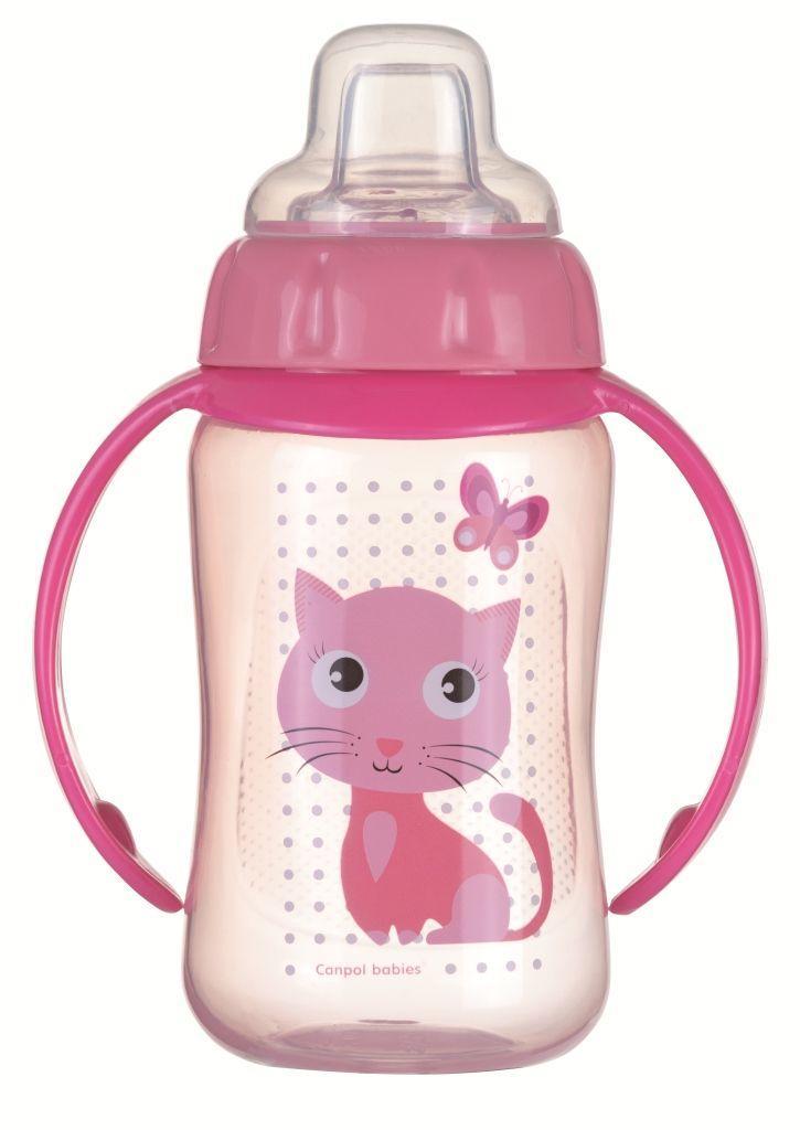 Canpol babies Поїльник допоможе Вашому малюкові навчитися пити самостійно. Має спеціальні зручні ручки. Забезпечений м'яким силіконовим носиком, який не дратує ясна дитини. Доступний в чотирьох пастельних тонах з веселими тваринами. Ємність: 320 мл